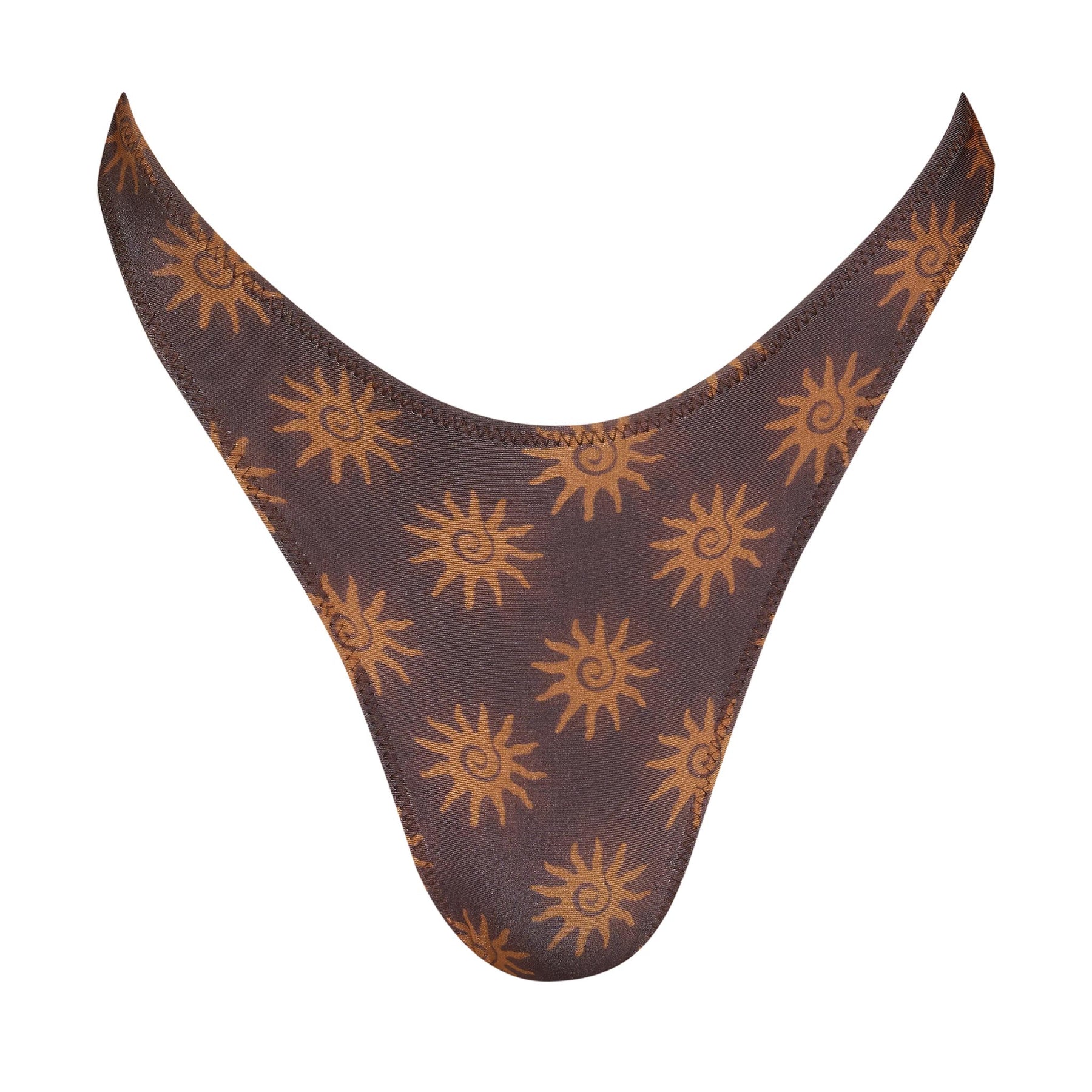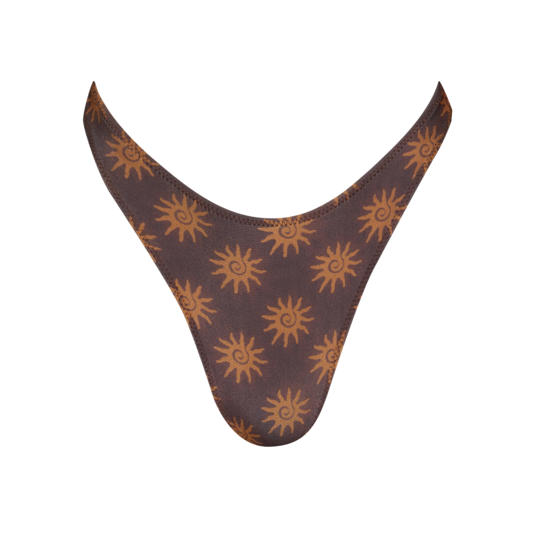 Our LUMA bottom in our newest print "SOLARA" is a modern update on the classic bikini silhouette. Designed with a sleek high-leg cut and cheeky fit, it naturally elongates the leg while flattering the waist. Finished with rushed accents at the hips, these bottoms are crafted in our signature shiny fabric for a seamless, sculpted look in and out of the water.
