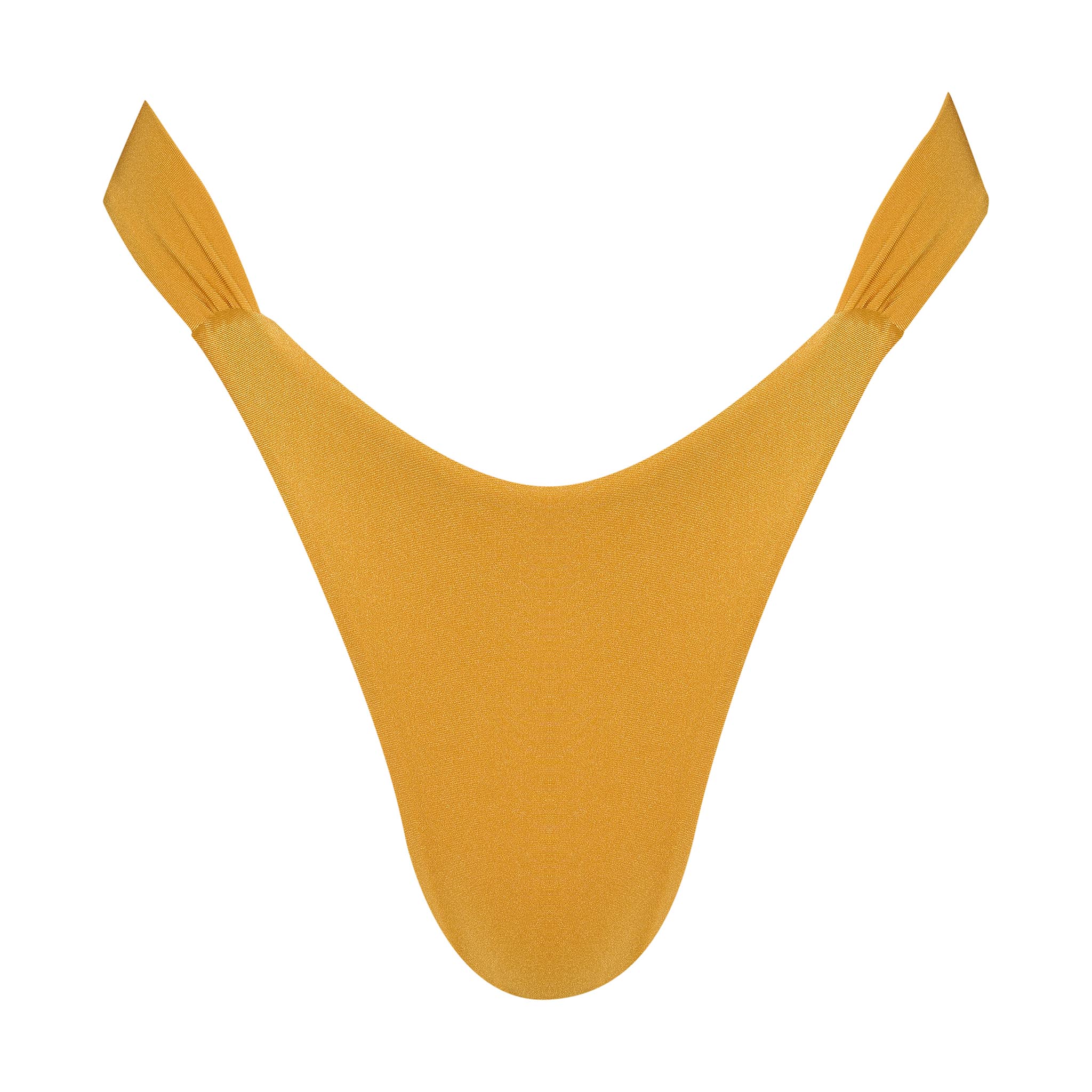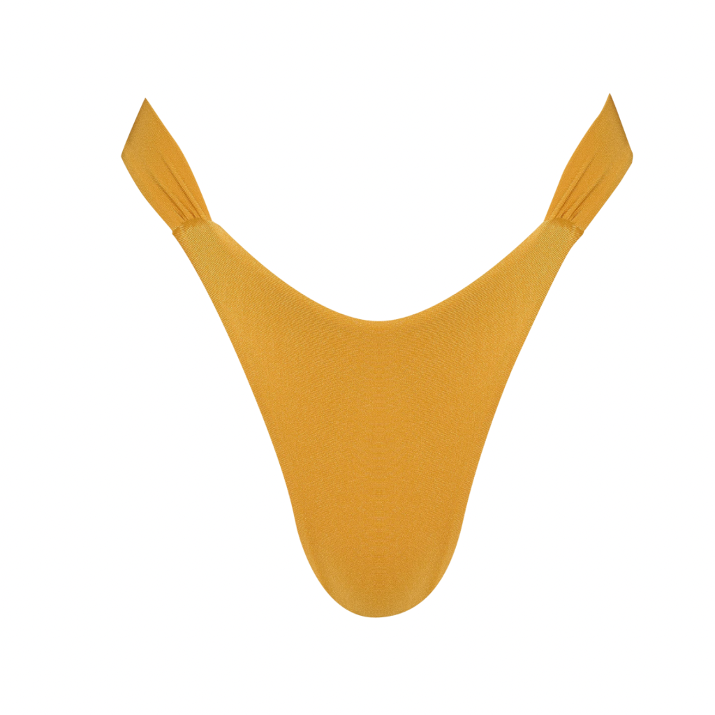 Our ISOLA bottom in Honey is a modern update on the classic bikini silhouette. Designed with a sleek high-leg cut and cheeky fit, it naturally elongates the leg while flattering the waist. Finished with rushed accents at the hips, these bottoms are crafted in our signature shiny fabric for a seamless, sculpted look in and out of the water.