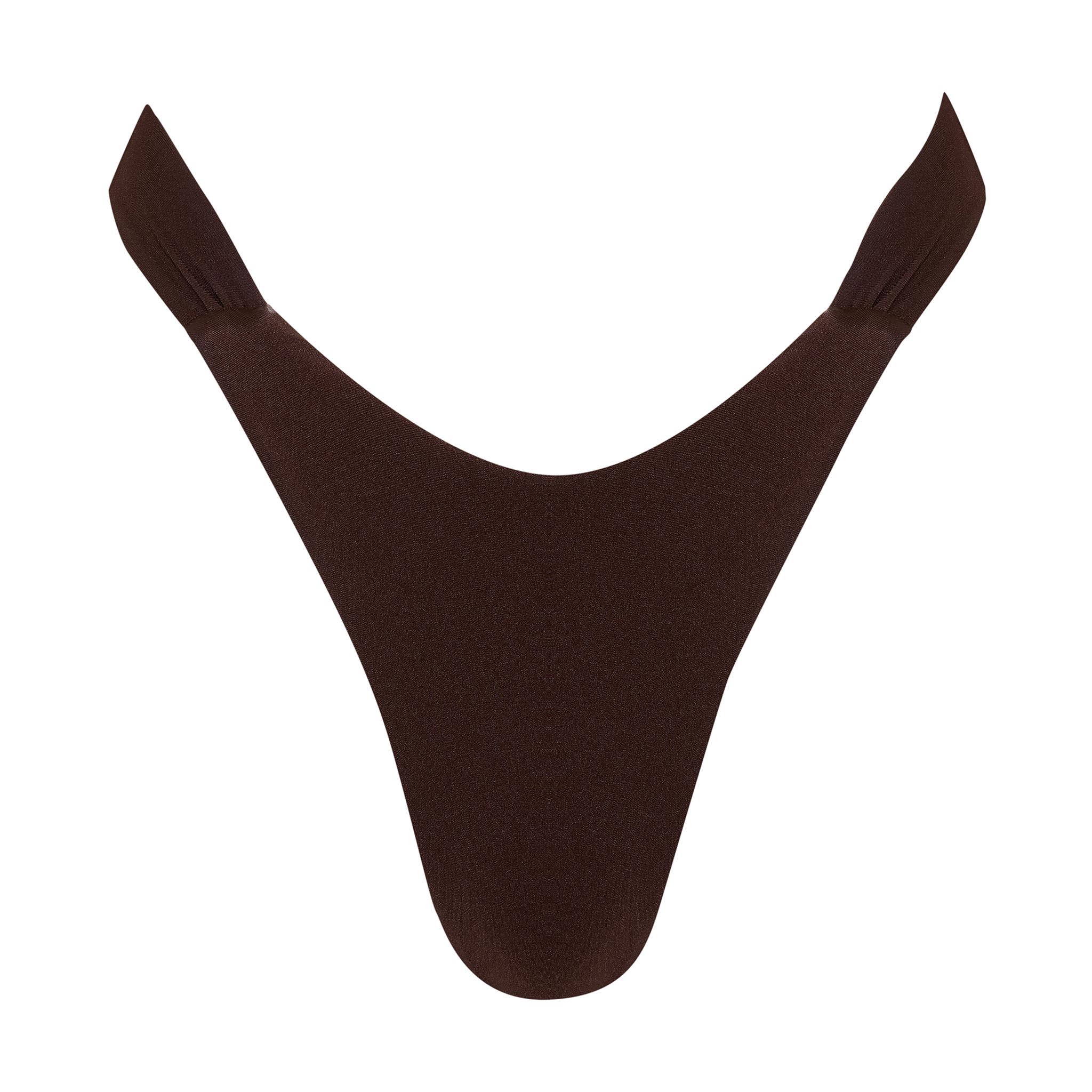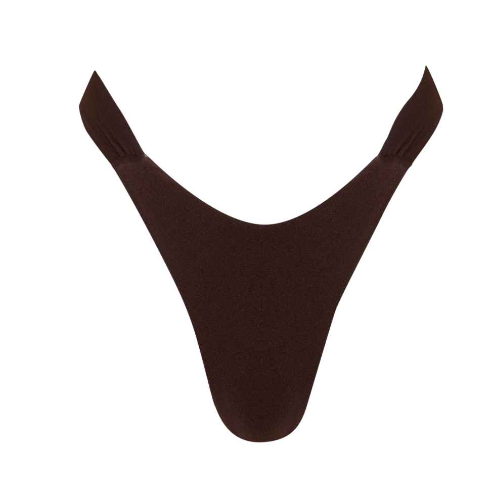 Our ISOLA bottom in ESPRESSO is a modern update on the classic bikini silhouette. Designed with a sleek high-leg cut and cheeky fit, it naturally elongates the leg while flattering the waist. Finished with rushed accents at the hips, these bottoms are crafted in our signature shiny fabric for a seamless, sculpted look in and out of the water.
